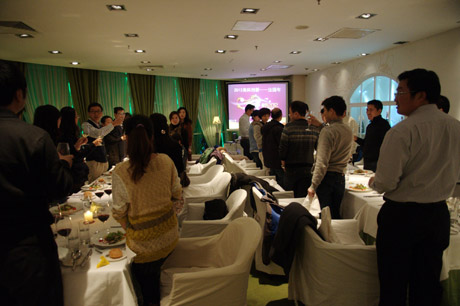 2012年1月12-14日,美科(kē)创新公司2頻好011年度年會(huì)在北(běi)京公司总部胜利召開(kāi)。 會(huì)议结束后,全体员工(gōng)欢聚一(yī)堂,共进晚餐朋上,预祝在新的一(yī)年里再创佳绩!