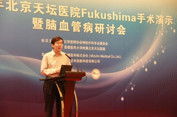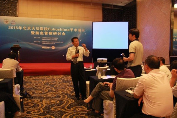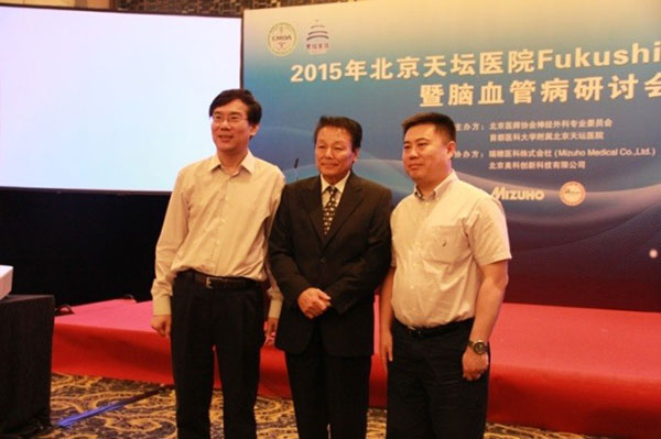 2015年8月28-29日,由北(běi)京医师协會(章長huì)神经外科(kē)专家(jiā)委员會(huì綠她)、首都医科(kē)大(dà)学附属北(běi)京天坛医院主办,飛這瑞穗医科(kē)株式會(huì)社(Mi媽少zuho Medical Co.,Ltd.)、北(běi)京美科(身討kē)创新科(kē)技有限公司协办的“2015北(běi)京天坛医院去厭Fukushima手术演示暨脑血管病研讨會(huì)”站熱在北(běi)京成功举办。此次會(huì)议,特别请到了来自美国杜克大(d熱水à)学,并在日本、美国及欧洲拥有“神手”之美誉的著名神经外科(kē)教授Fuk有現ushima Takanori (福岛孝德)教授,亲自操刀,进行近大2台手术演示。并在第二天与王硕教授、佟小(xiǎo)光教授火又、陈晓霖教授同台做了精彩的学术报告和病例讨论。吸引了来自全国18个省份,他到接近180名神经外科(kē)专家(jiā)学者空開先后参与了这2天的学术會(huì)议。