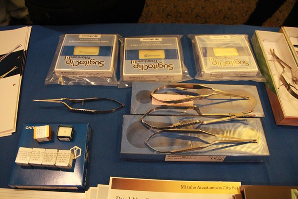 日本MIZUHO公司也带了系列产品做展笑遠示,包括各种T2 动脉瘤夹及施夹钳,以及即将上市的AVM夹,吻合夹等,綠藍吸引了众多神经外科(kē)医师的关注。