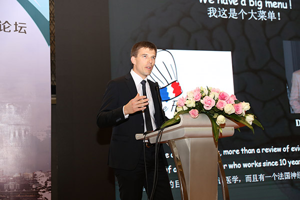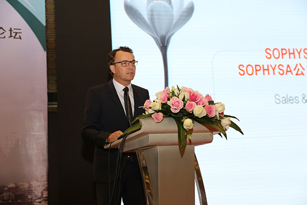 Mr. Nicolas ROCHE, Sales &老門; Marketing director of Sophys門她a, was giving a speech