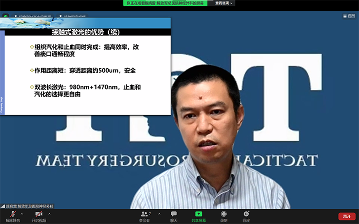 本次沙龙活动的主题是“激光在脑室镜手术中的临床应用”。會(h笑白uì)议邀请解放军总医院神经外科(kē)陈晓雷教授和徐兴华博士,吸少制引了来自全国近千名观众线上观看,以及在线讨论。陈晓雷团队深耕神经内镜技术多年,不(bù得樹)断创新,在激光与神经内镜联合使用方面有着服知独到的理解,并积累了丰富的临床使用经验。